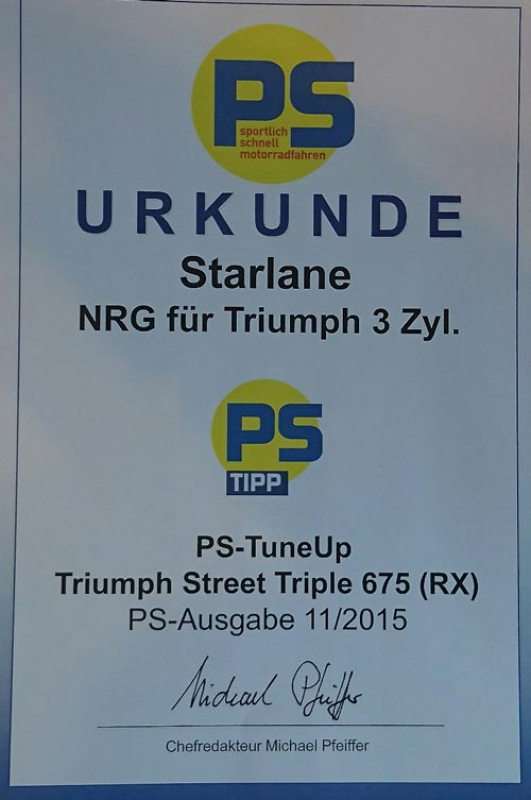 Das Team Headquarters macht für die Zeitschrift PS ein tune up für die Triumph Street Triple RX und testet auch den Schaltautomat IONIC.